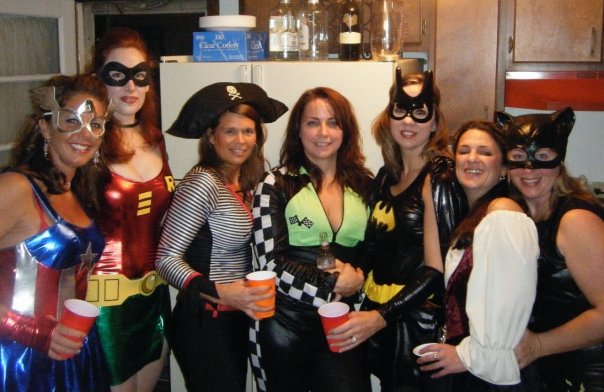 Mostly everyone dressed up:  Catwoman, Wonder Woman, Danika Patrick, a Pirate, a Wench, and Captain America.