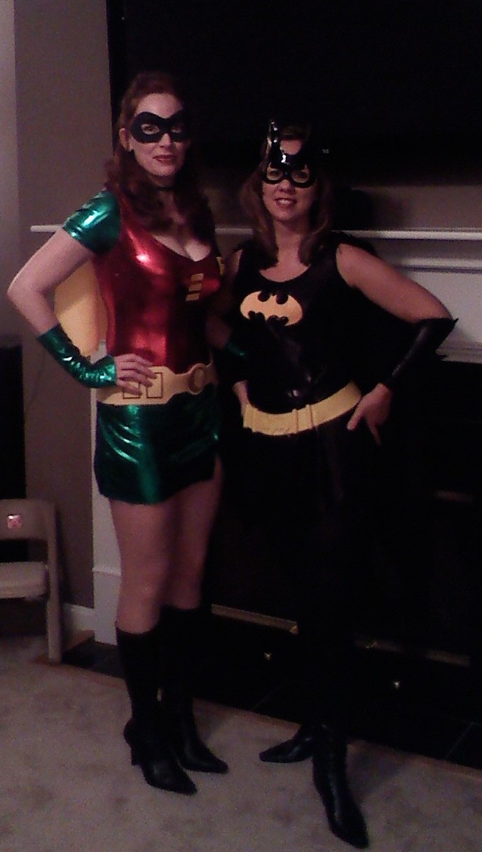 Halloween night, I’m at the Hen House with the girls getting ready.  Thankfully, one of the girls chose to go as Batwoman and be my partner in crime.  It was going to be a night of pleather.  Yup, I could smell it. Literally. And, knowing pleather doesn’t breathe, I put on extra deodorant.  You know, just in case…