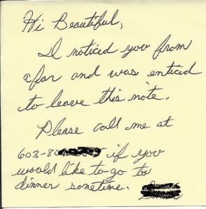 This leads me into my next point: Men, why would you leave an anonymous note on my car and think that cursive handwriting and flattery will provoke a phone call from me? How do I know you aren’t missing your front tooth and could be weighing in at 300 pounds? How do I know you are not old enough to be my grandfather? And, look, if you’re too shy to approach me in person, it means you are hiding something….