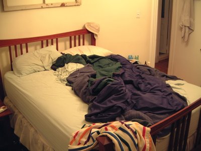 I looked over to the bed and wondered when the last time his sheets had been washed. Eww.
